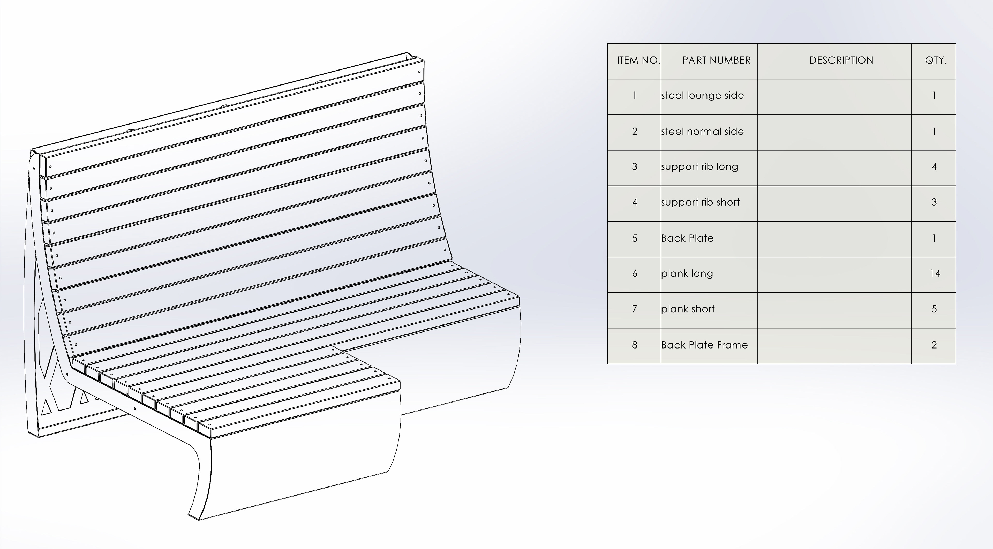 A space-creating design highlights the flexibility and the versatility of the material. The perforated cuts add levity and allow for vining plants to grow within the design. The inward facing benches create a communal space in the center under the arch, while the offset arrangement allows different viewing experiences of the park.